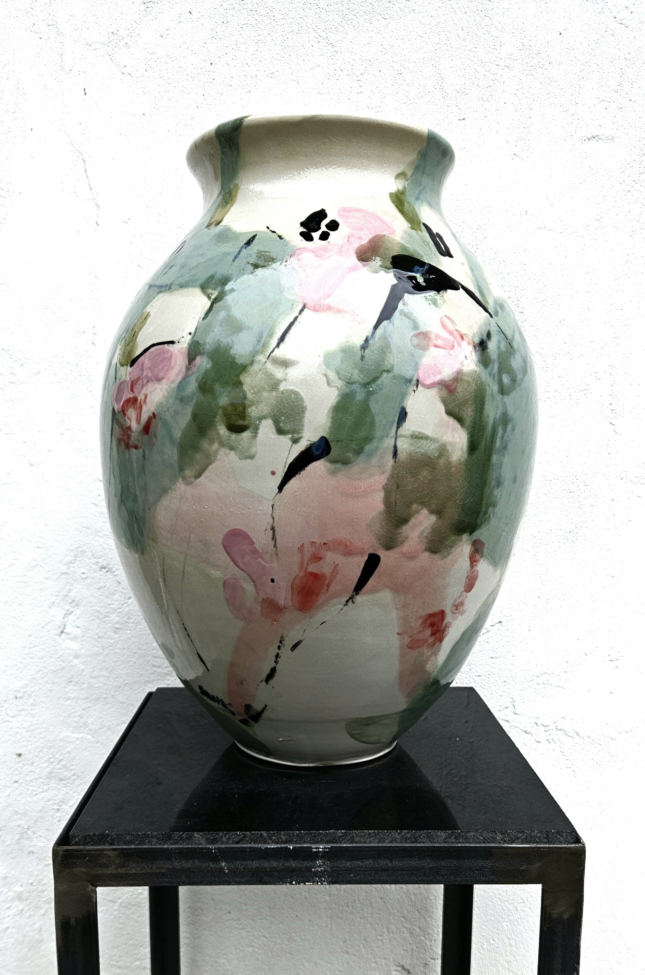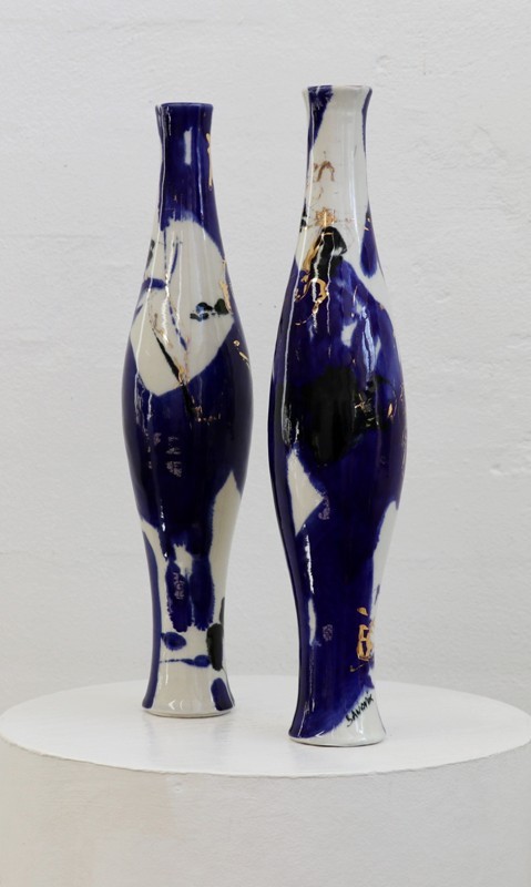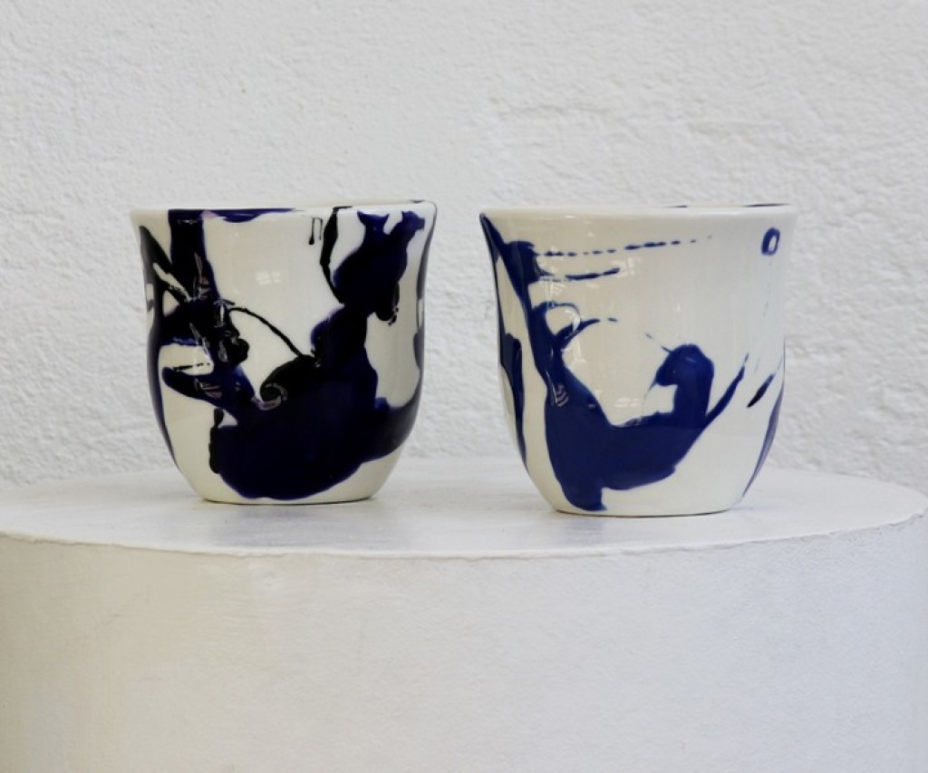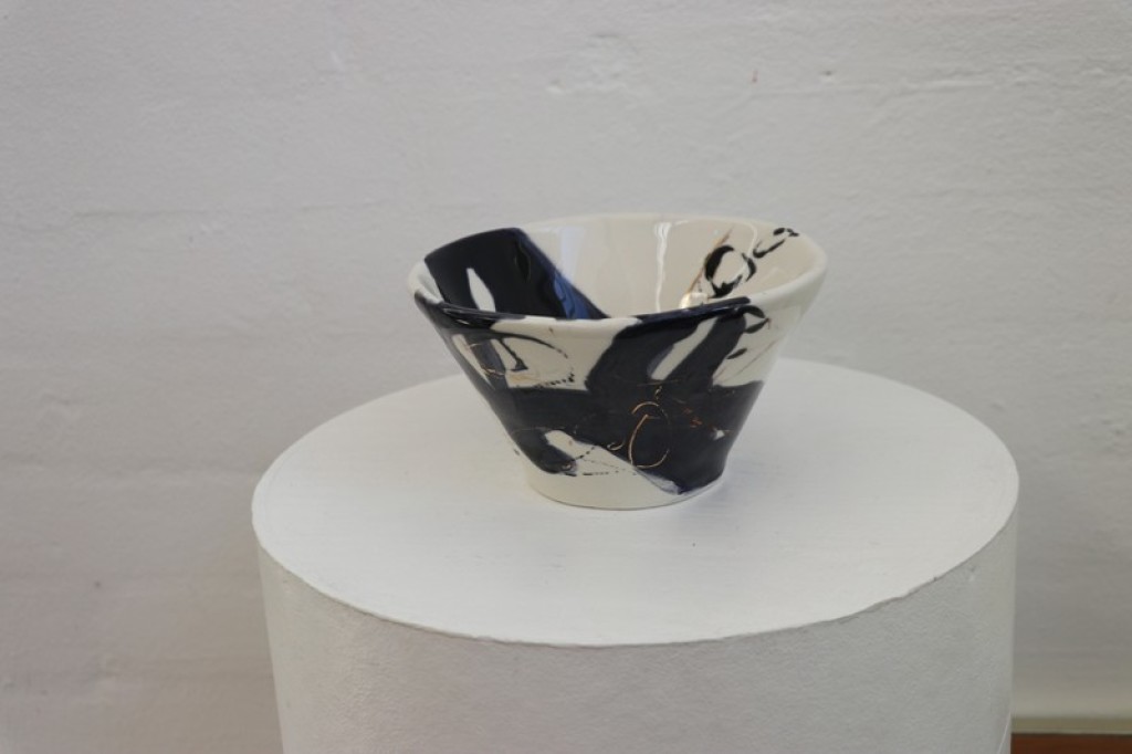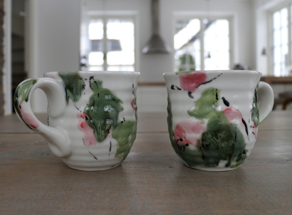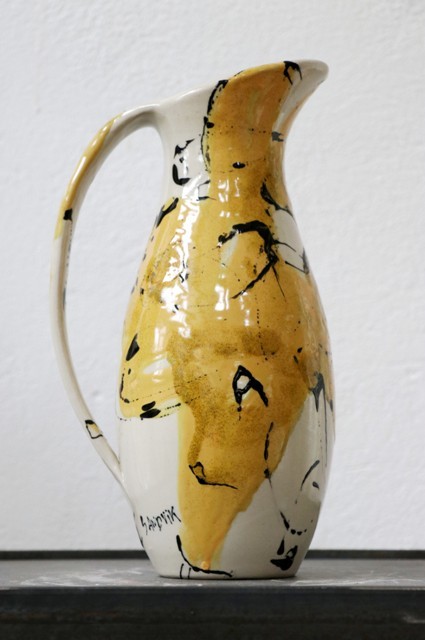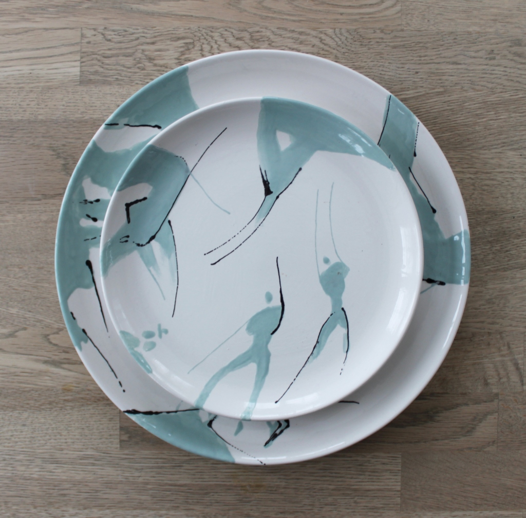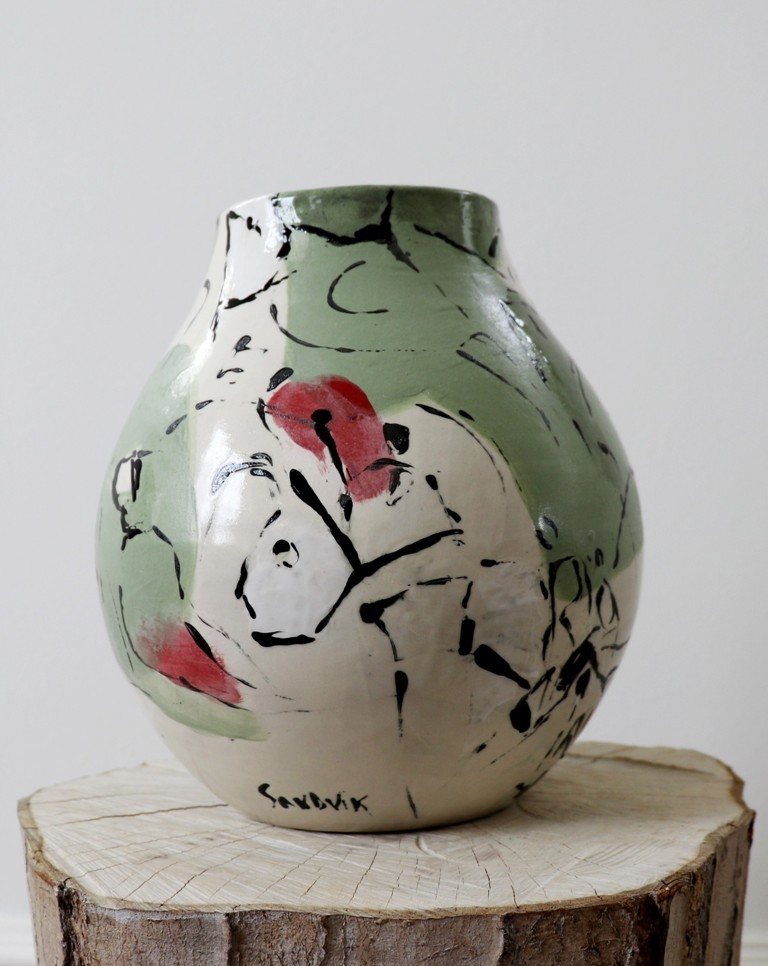 At lege med leret, og få de abstrakte former fra malerierne ind i lerskulpturene er en sjov og udfordrende opgave. Jeg arbejder både i lertøj og stentøj og alt er unika. Jeg bruger mine abstrakte motiver fra malerierne på vaser, kopper, skåle, skulpturer mv.
