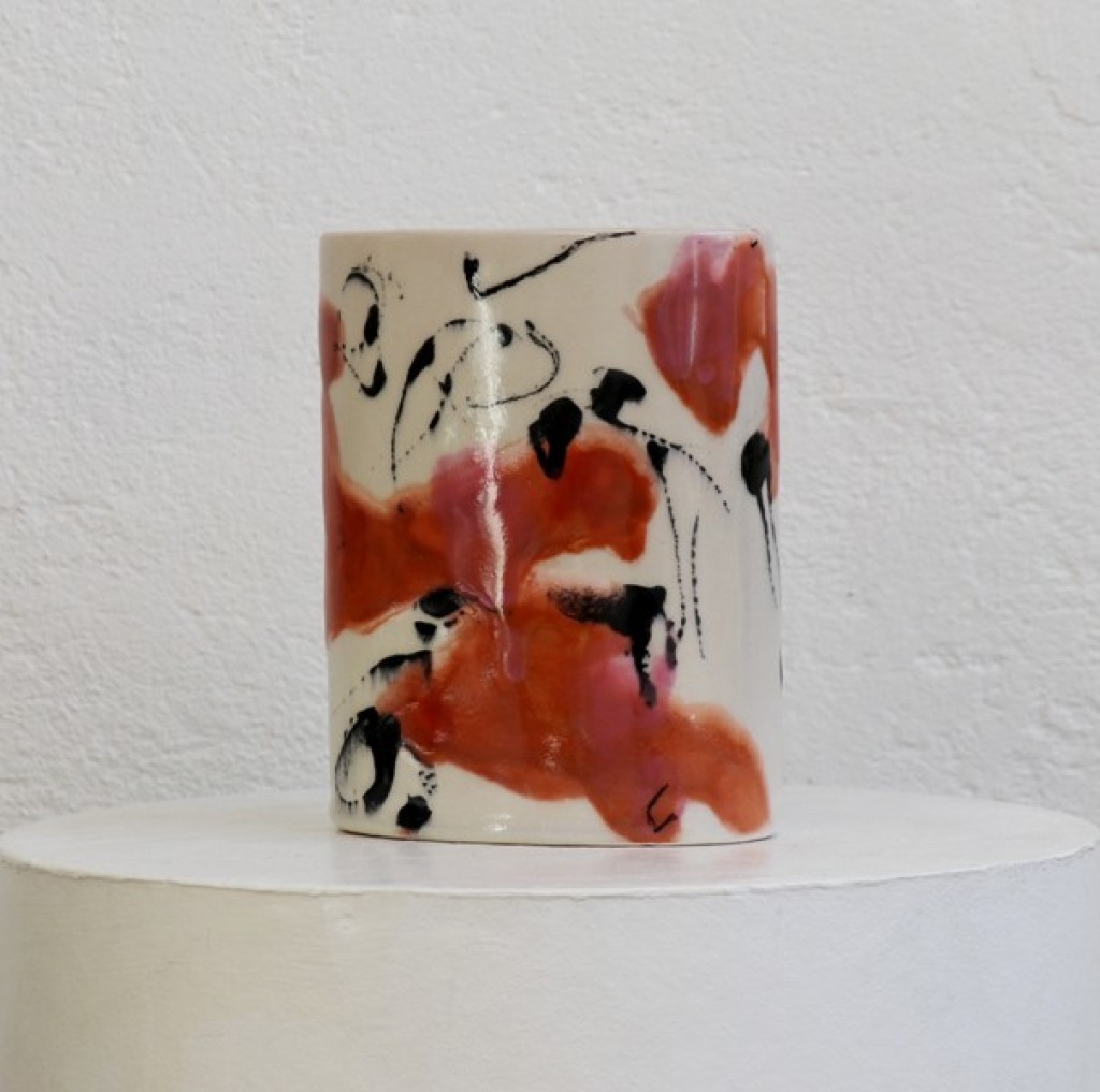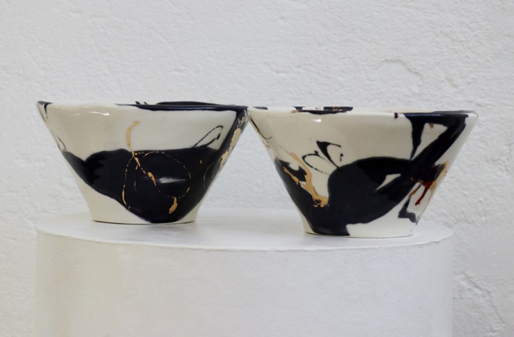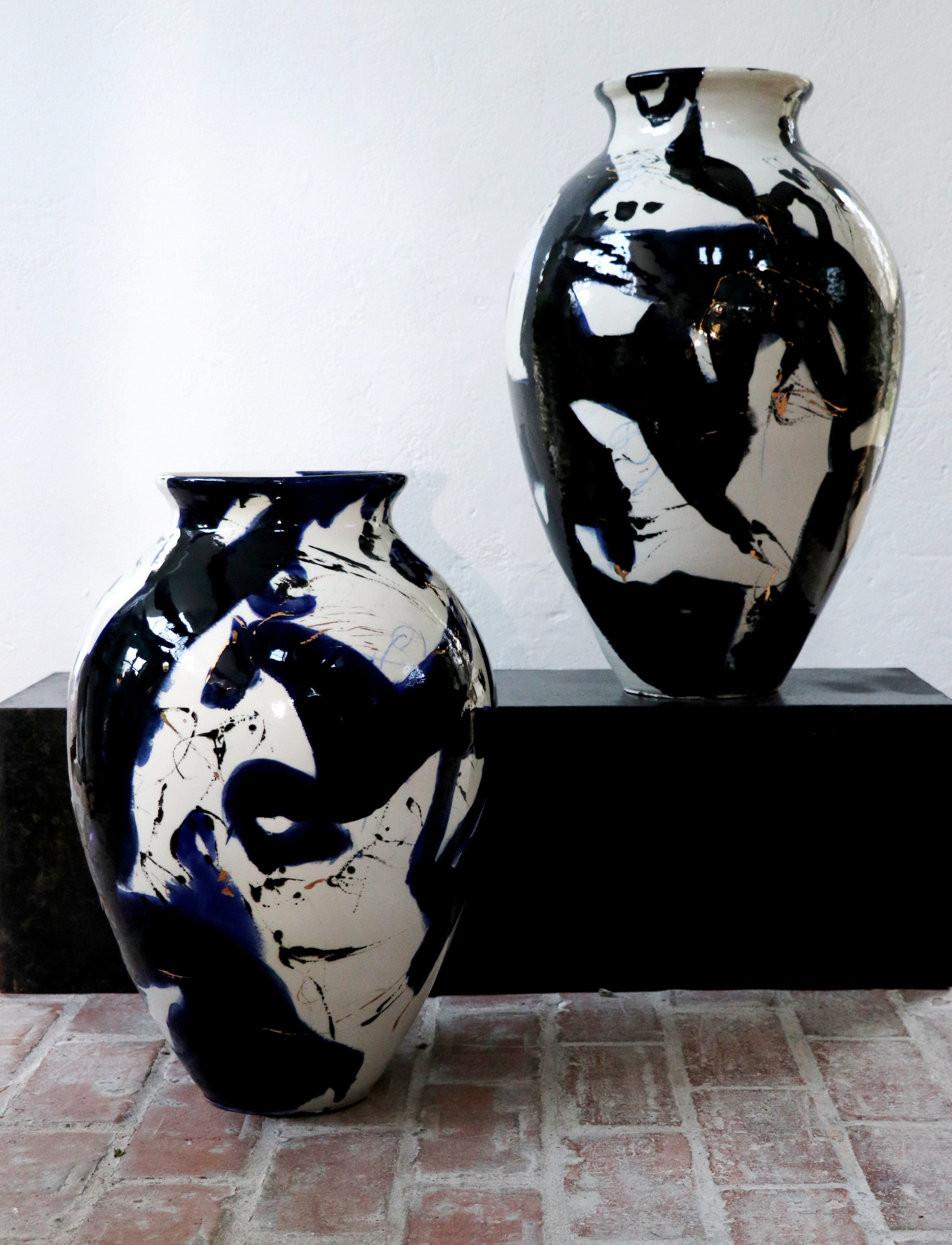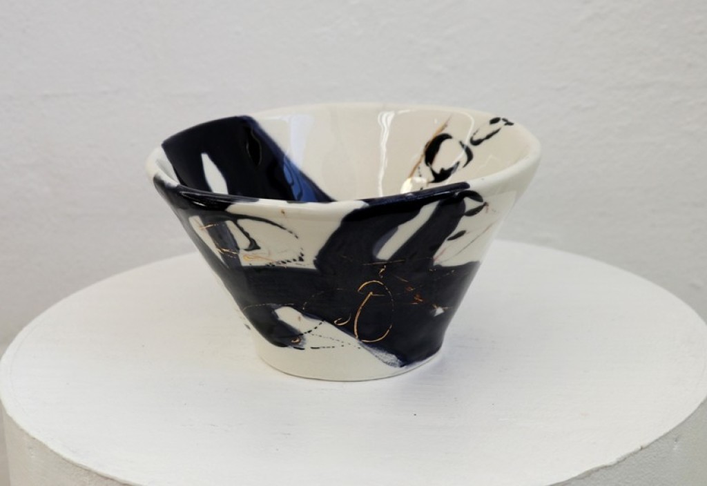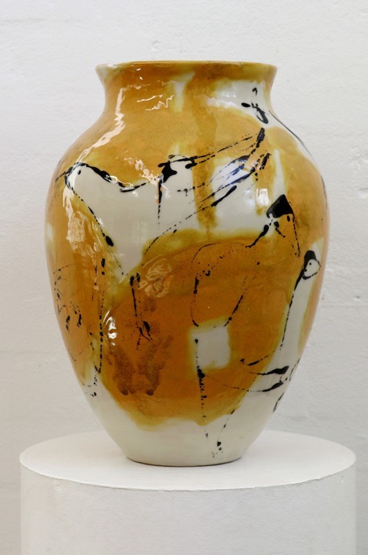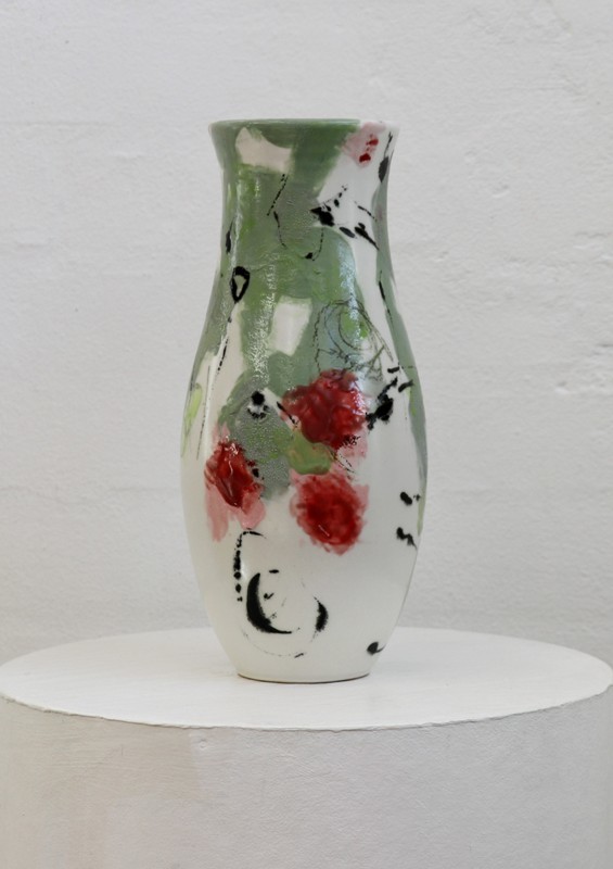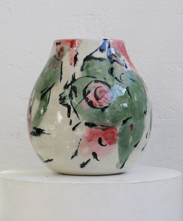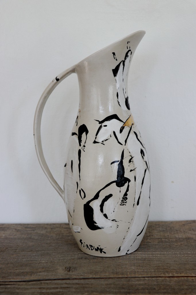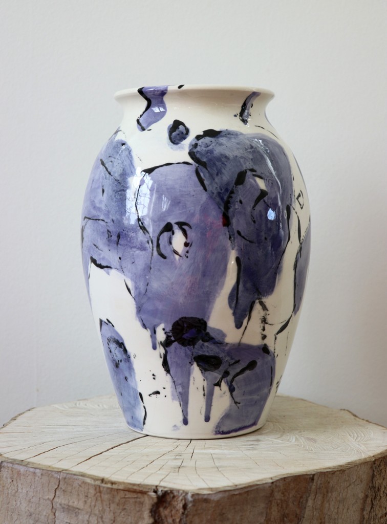 At lege med leret, og få de abstrakte former fra malerierne ind i lerskulpturene er en sjov og udfordrende opgave. Jeg arbejder både i lertøj og stentøj og alt er unika. Jeg bruger mine abstrakte motiver fra malerierne på vaser, kopper, skåle, skulpturer mv.