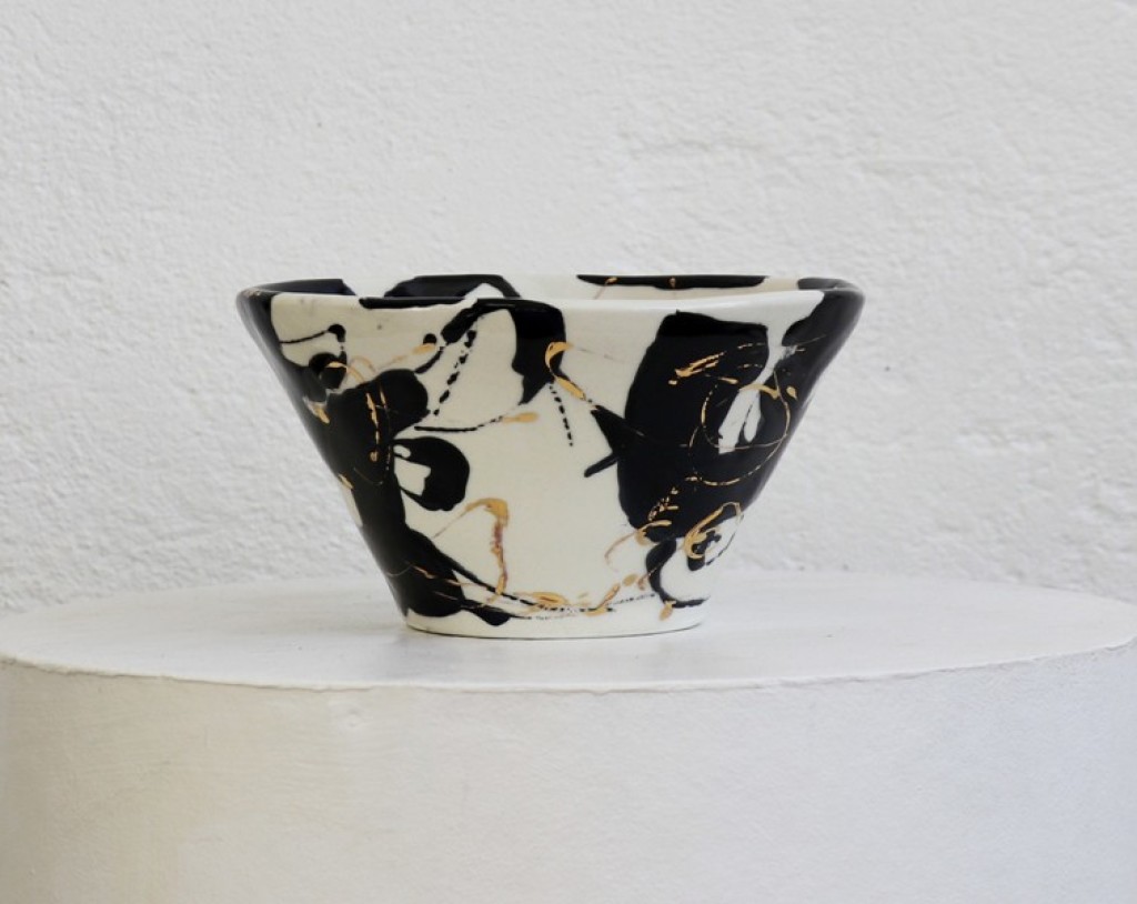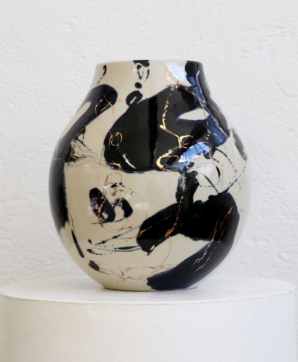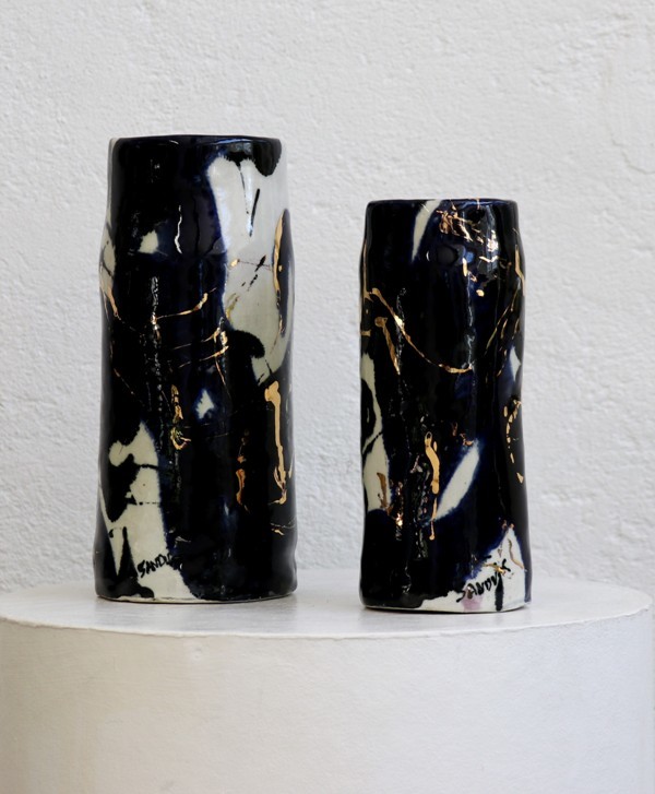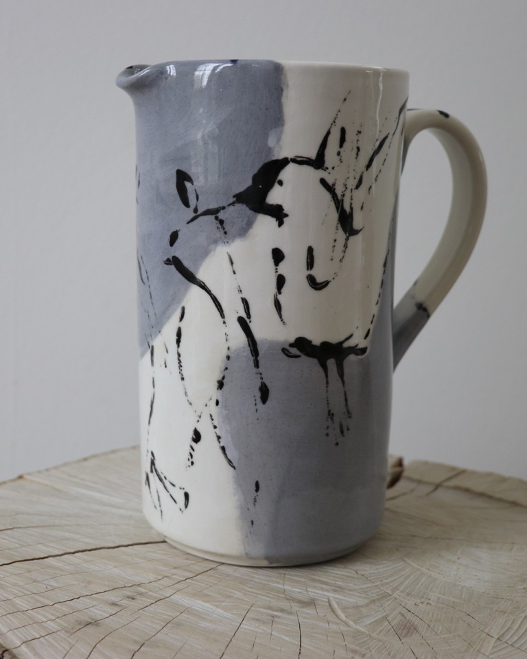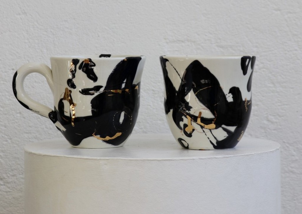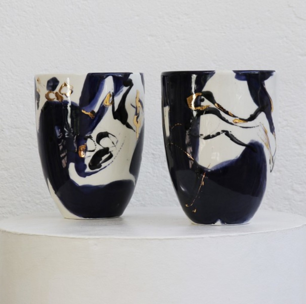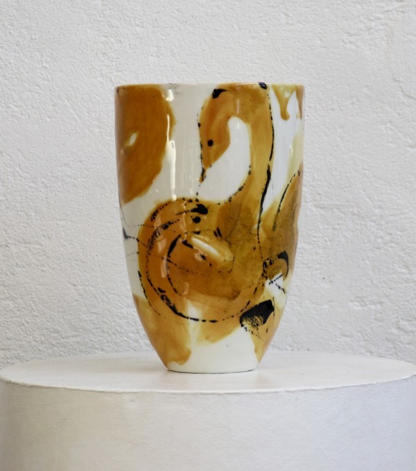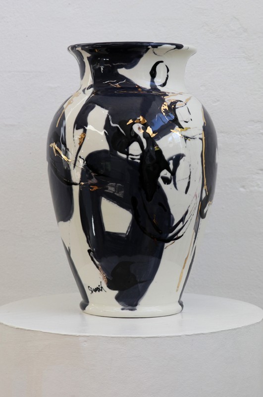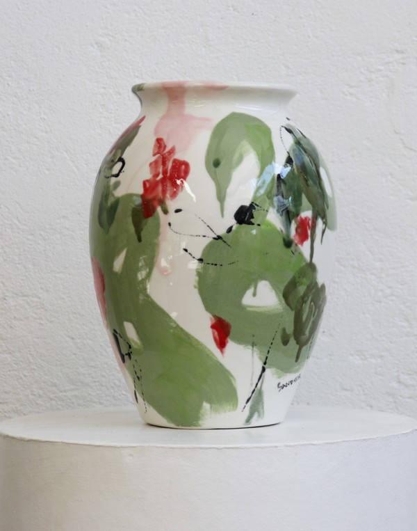 At lege med leret, og få de abstrakte former fra malerierne ind i lerskulpturene er en sjov og udfordrende opgave. Jeg arbejder både i lertøj og stentøj og alt er unika. Jeg bruger mine abstrakte motiver fra malerierne på vaser, kopper, skåle, skulpturer mv.
