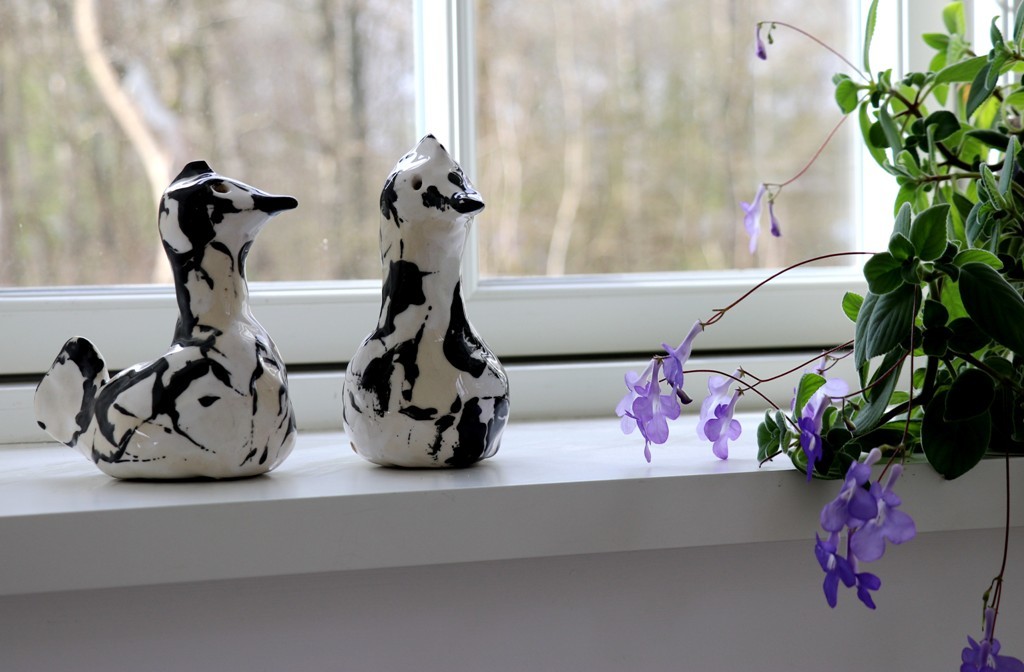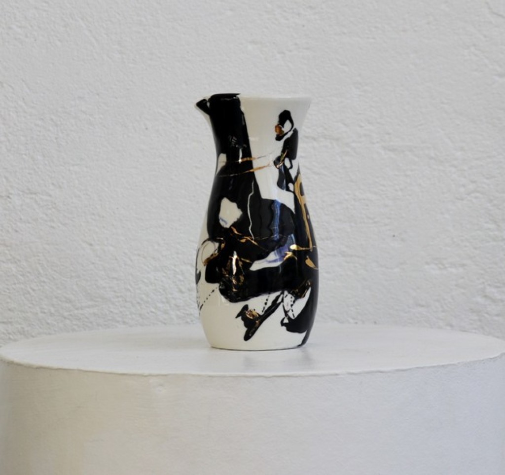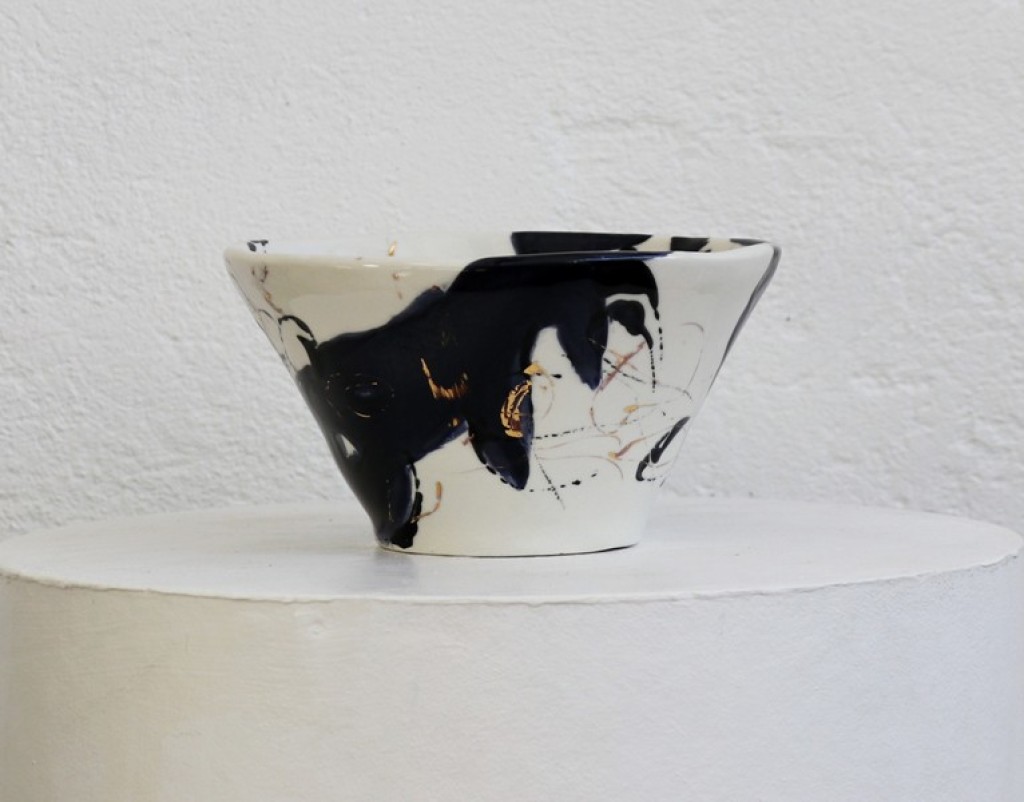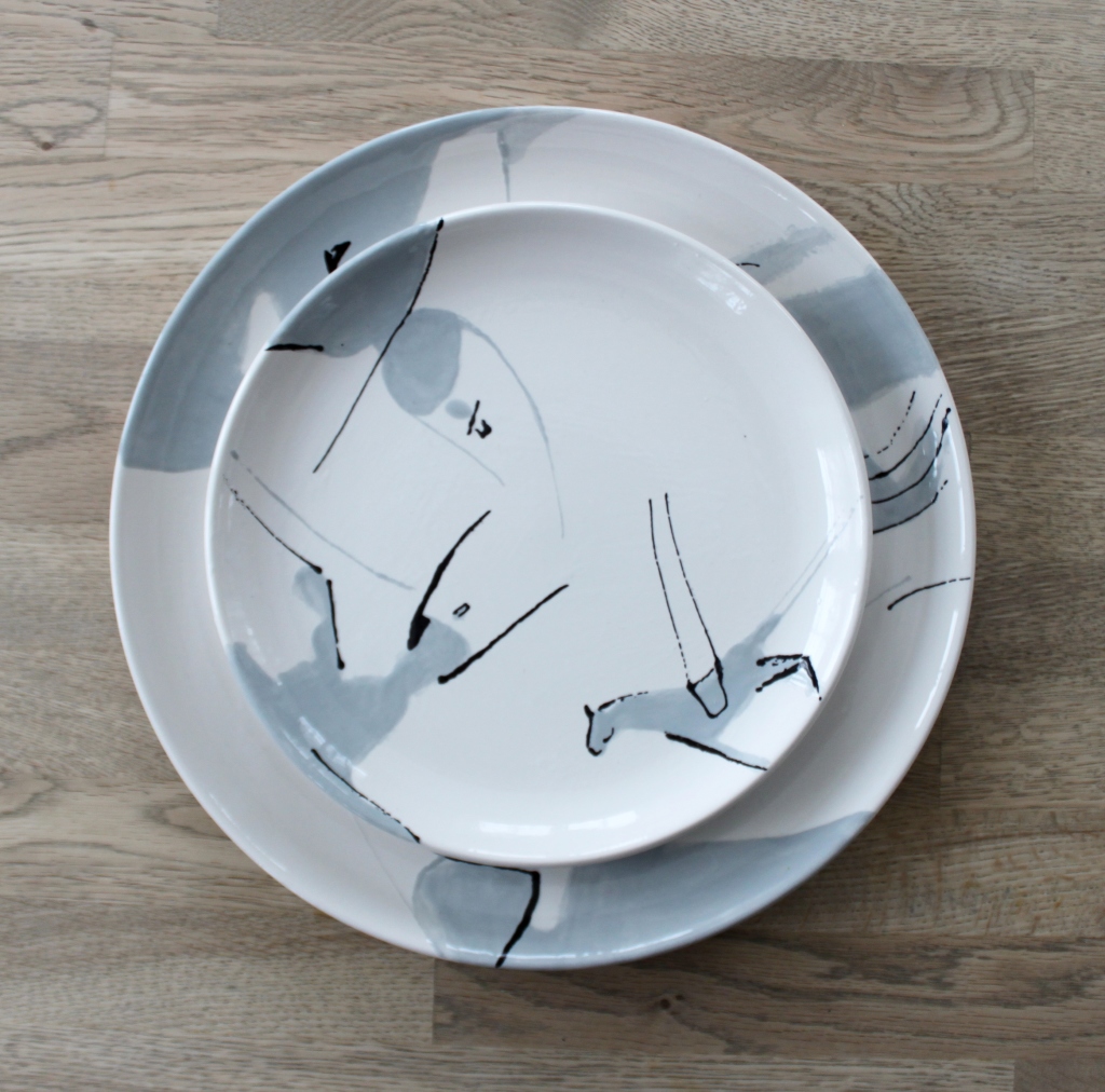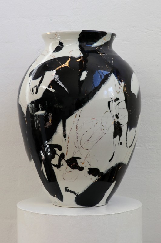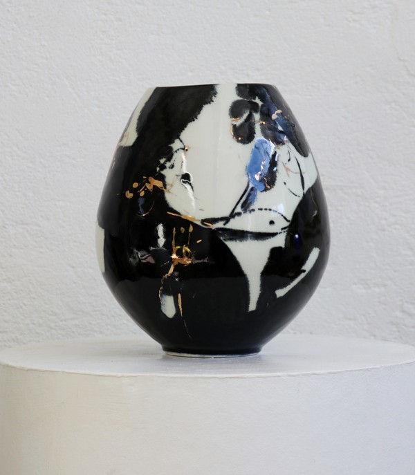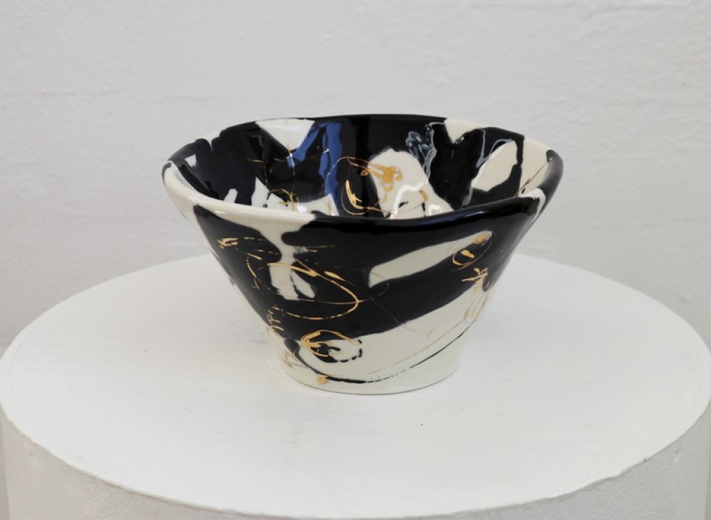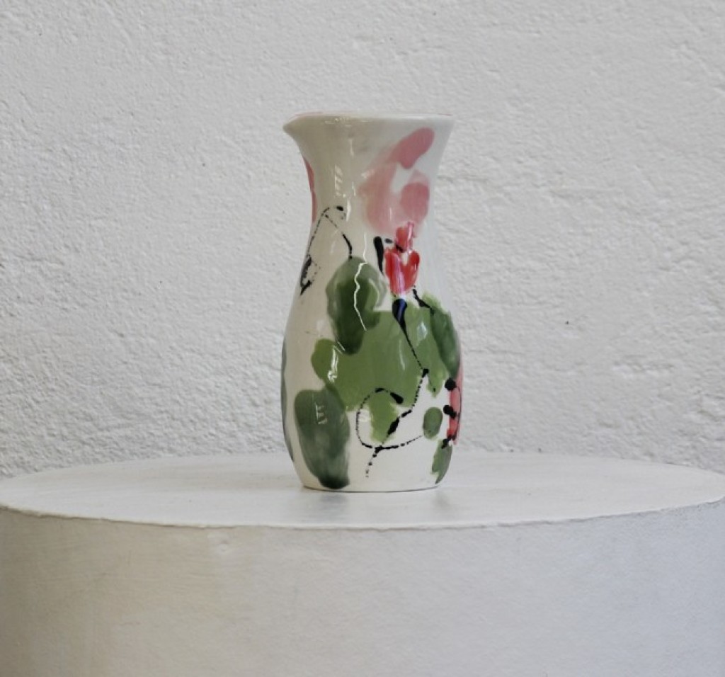 At lege med leret, og få de abstrakte former fra malerierne ind i lerskulpturene er en sjov og udfordrende opgave. Jeg arbejder både i lertøj og stentøj og alt er unika. Jeg bruger mine abstrakte motiver fra malerierne på vaser, kopper, skåle, skulpturer mv.