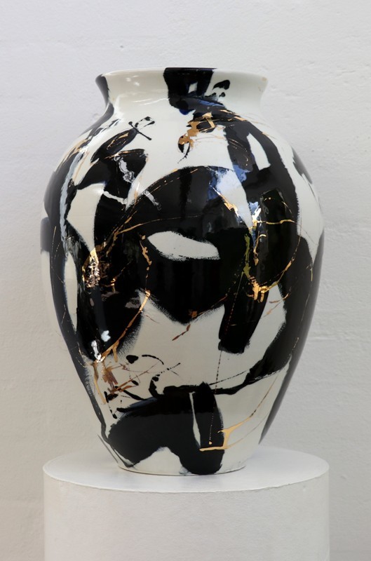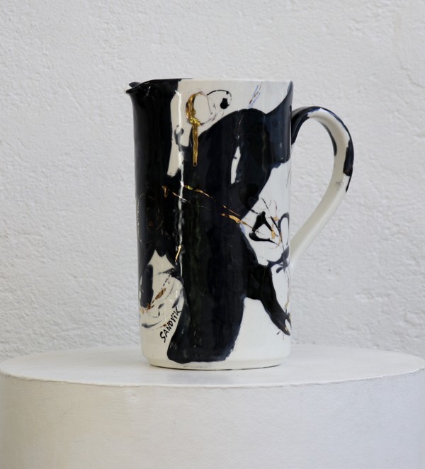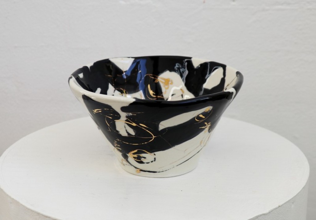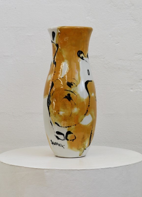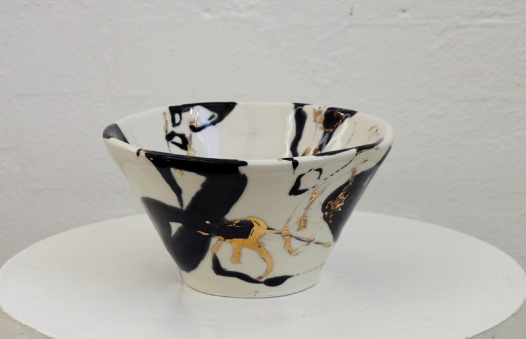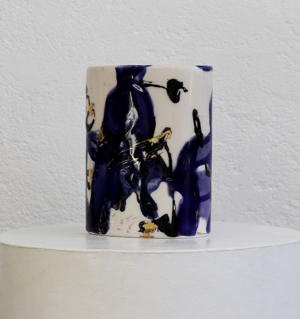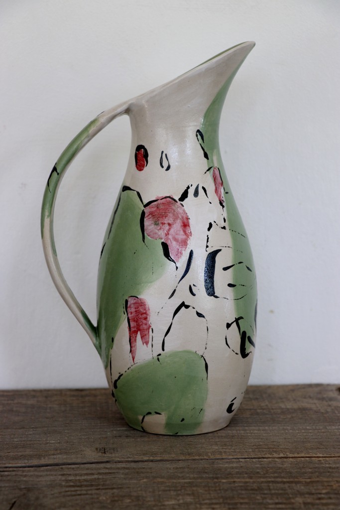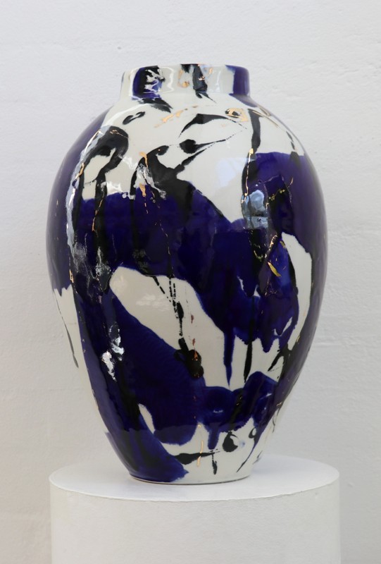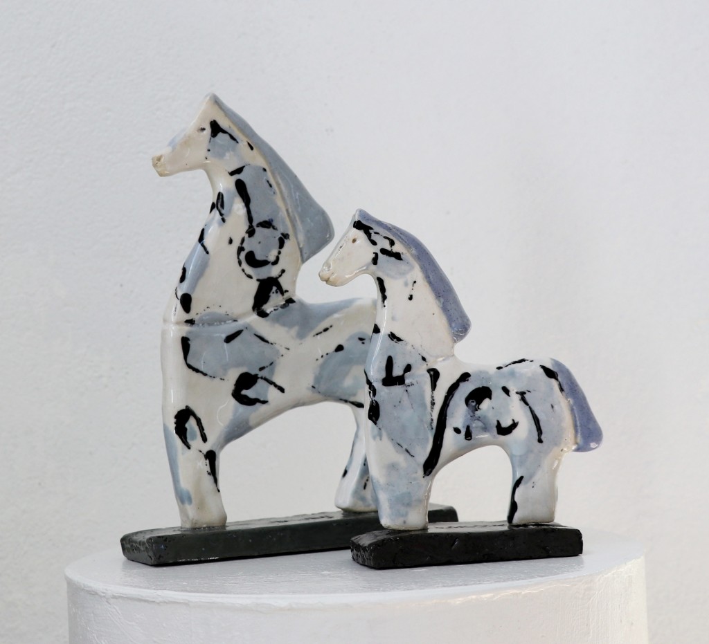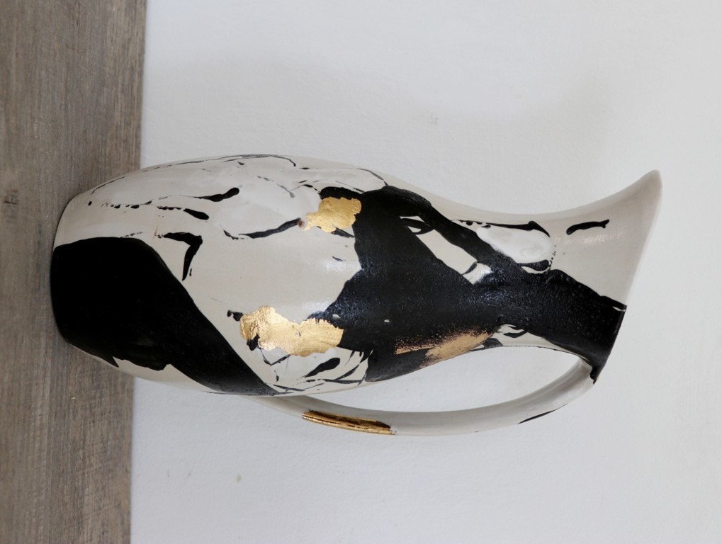 At lege med leret, og få de abstrakte former fra malerierne ind i lerskulpturene er en sjov og udfordrende opgave. Jeg arbejder både i lertøj og stentøj og alt er unika. Jeg bruger mine abstrakte motiver fra malerierne på vaser, kopper, skåle, skulpturer mv.