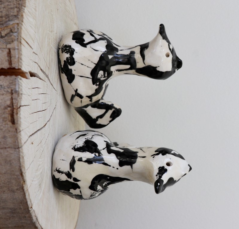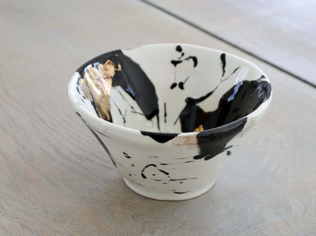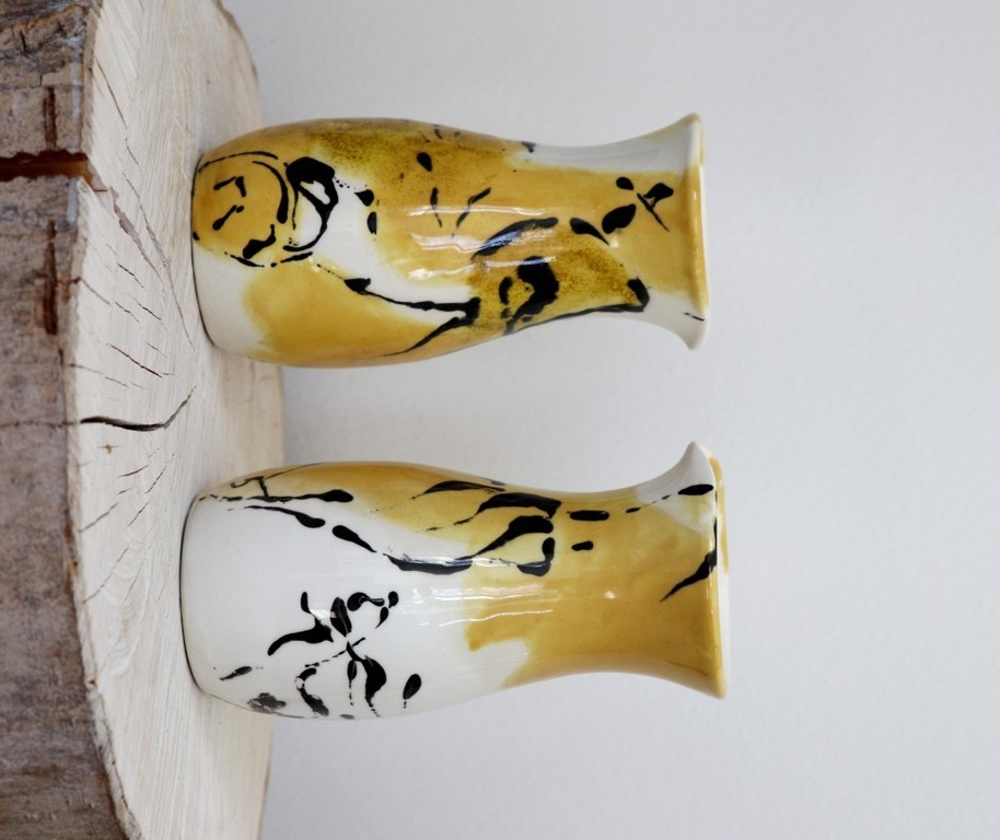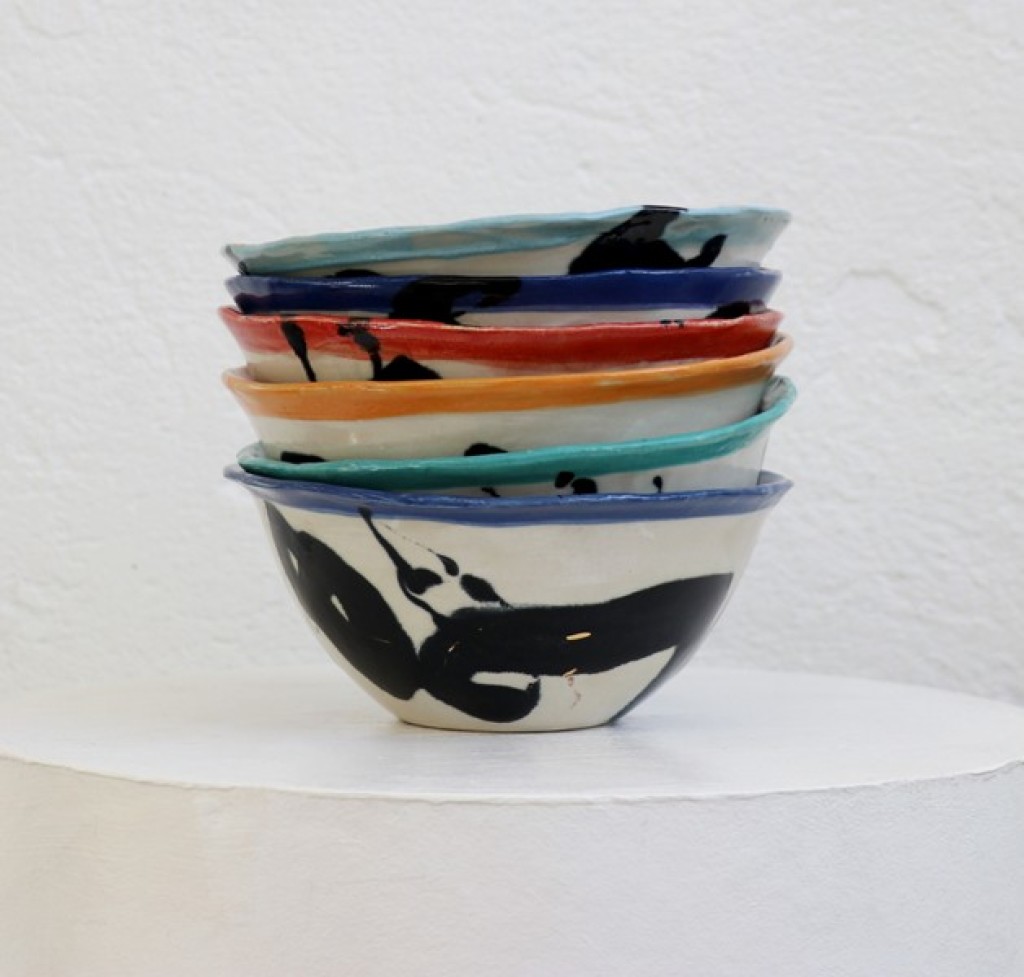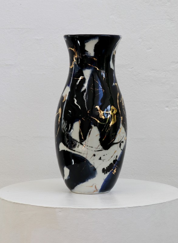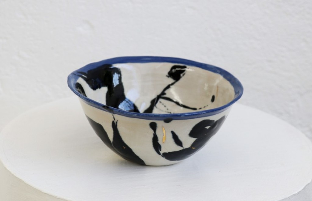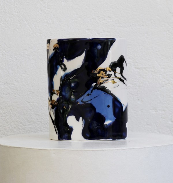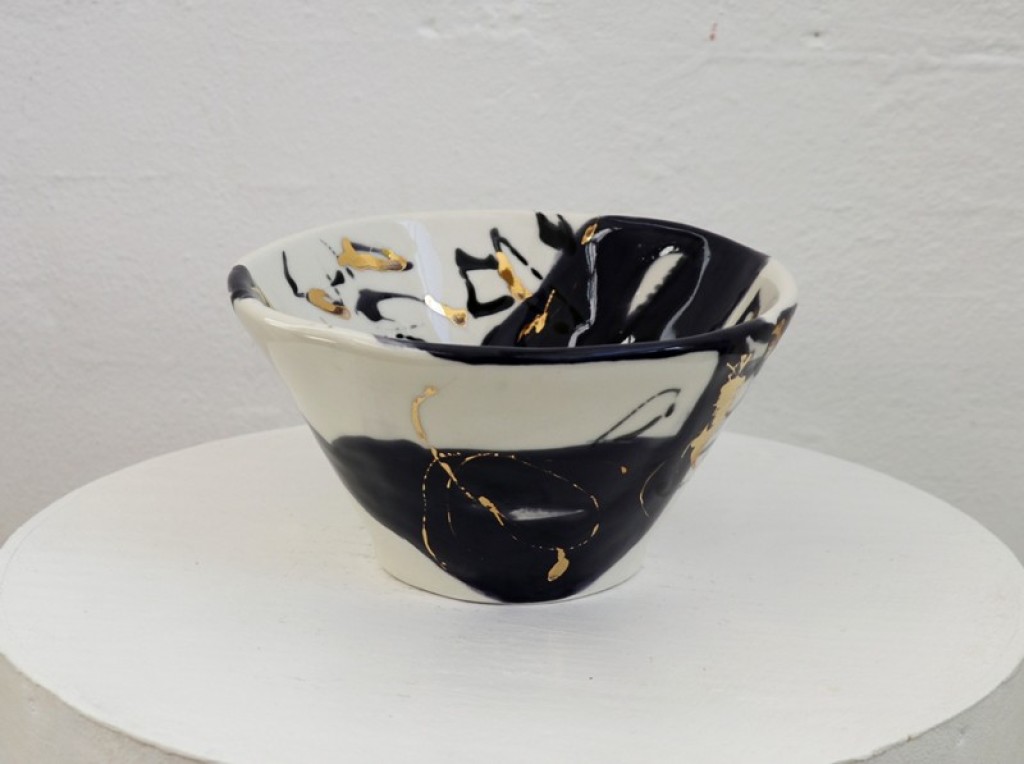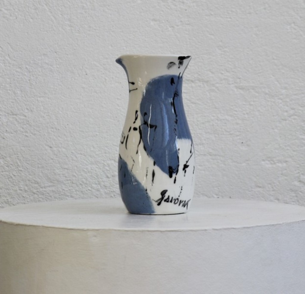 At lege med leret, og få de abstrakte former fra malerierne ind i lerskulpturene er en sjov og udfordrende opgave. Jeg arbejder både i lertøj og stentøj og alt er unika. Jeg bruger mine abstrakte motiver fra malerierne på vaser, kopper, skåle, skulpturer mv.